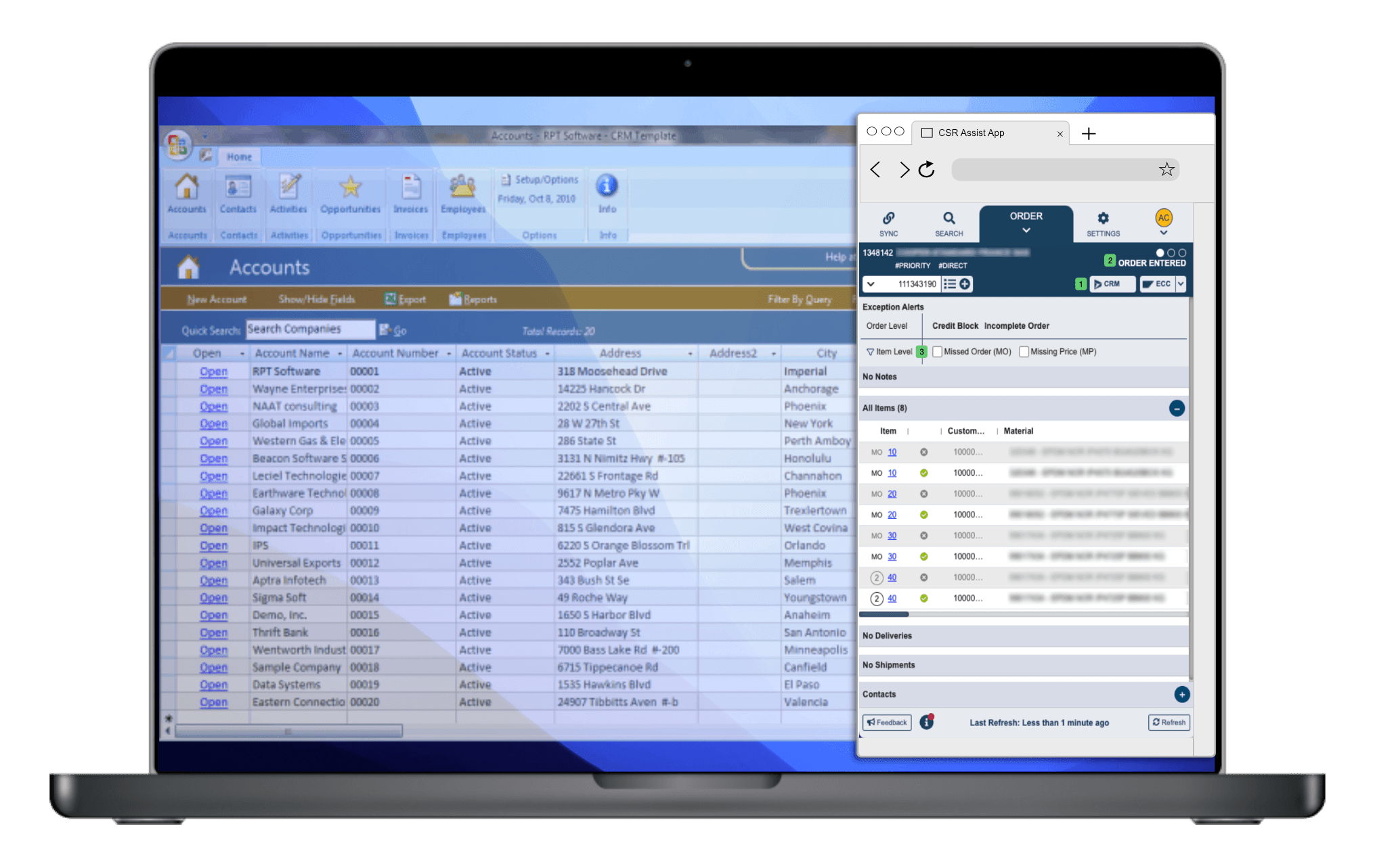 Stage the order provided context for the CSR;