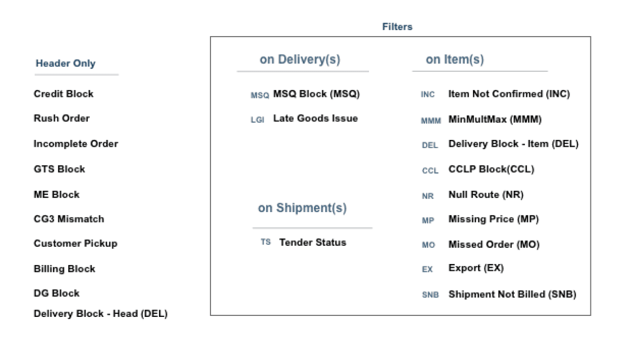 The scope of the problem could be used as a filter, (i.e. Single item impacted or Order level impacts multiple items);